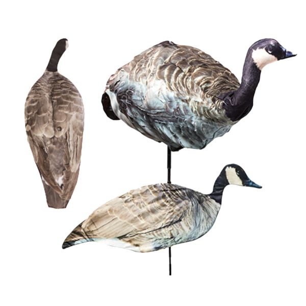 Made from real photos of actual geese, the Canada Goose Combo is the ultimate decoy system for waterfowlers looking for a portable and super realistic set. Whether you have limited space to store or transport decoys, are tired of hauling heavy and bulky decoys into your honeyhole or simply want to add more dimension and realism to already owned decoys The Canada Goose Combo is the portable, realistic and versatile decoying addition to any goose hunter's arsenal. By using 3D, top view and side view, you are maximizing the best of each pose and letting it work for you.