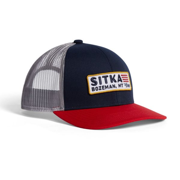 Pride of country meets pride of craft in this sharp new mid-pro trucker. Exceptional comfort and long-lasting integrity are hallmarks of its build, accented by an Americana-SITKA patch on the front.