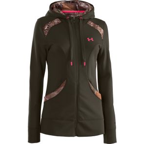 For once in your life, have a jacket that you actually enjoy wearing and don't feel like a balloon wearing. The Under Armour Women's Camo Big Logo Hoody is made with the super soft and quick drying ArmourFleece fabric that is infused with Under Armour's Signature Moisture Transport System which wicks sweat off your skin as it's being produced, giving you a cooler more comfortable jacket to wear all day. This hoody also comes with a 3 piece hood with crossover neck and pop color lining which top this jacket off perfectly, you also have the classic front kangaroo pocket which gives you all the room you need for your phone, keys, or anything else you can think of. Pick one up today for yourself or for your special lady and make them a little happier.